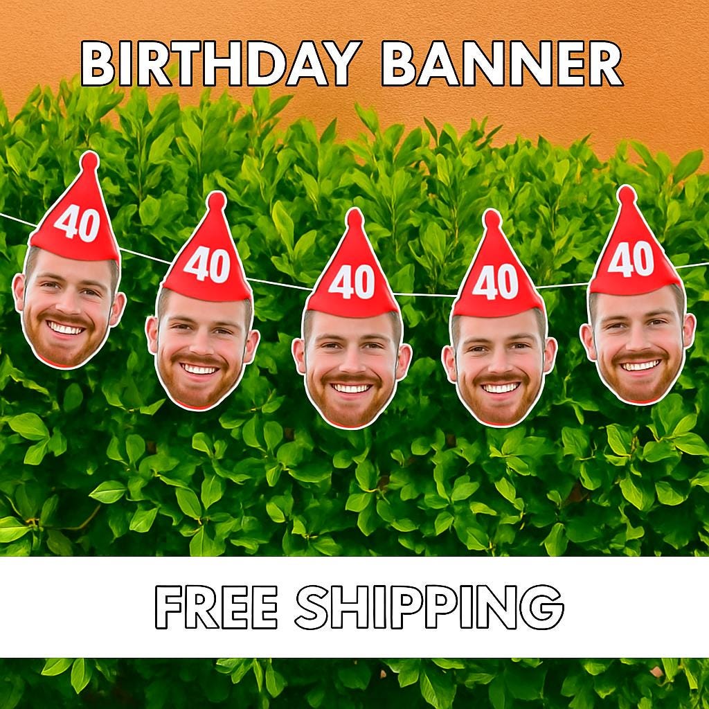 Celebrate with a fun, personalized garland featuring the birthday star's face in a party hat! It's a creative way to surprise them, get everyone smiling, and add a unique touch to the celebration. Whether it's a milestone or just for laughs, this banner makes a big impact.