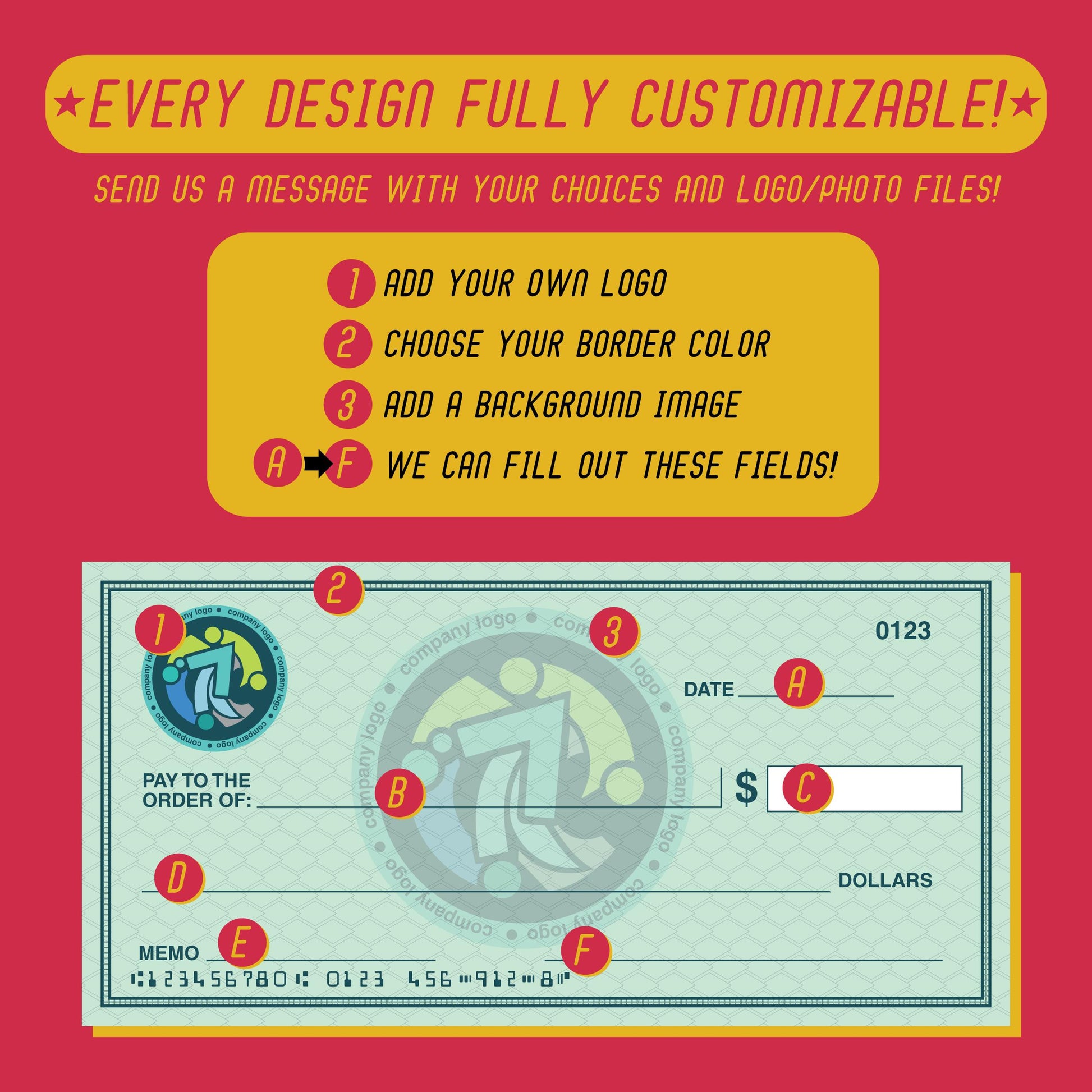 Fully Personalized: Add your logo, custom "Payee," and that dream dollar amount.