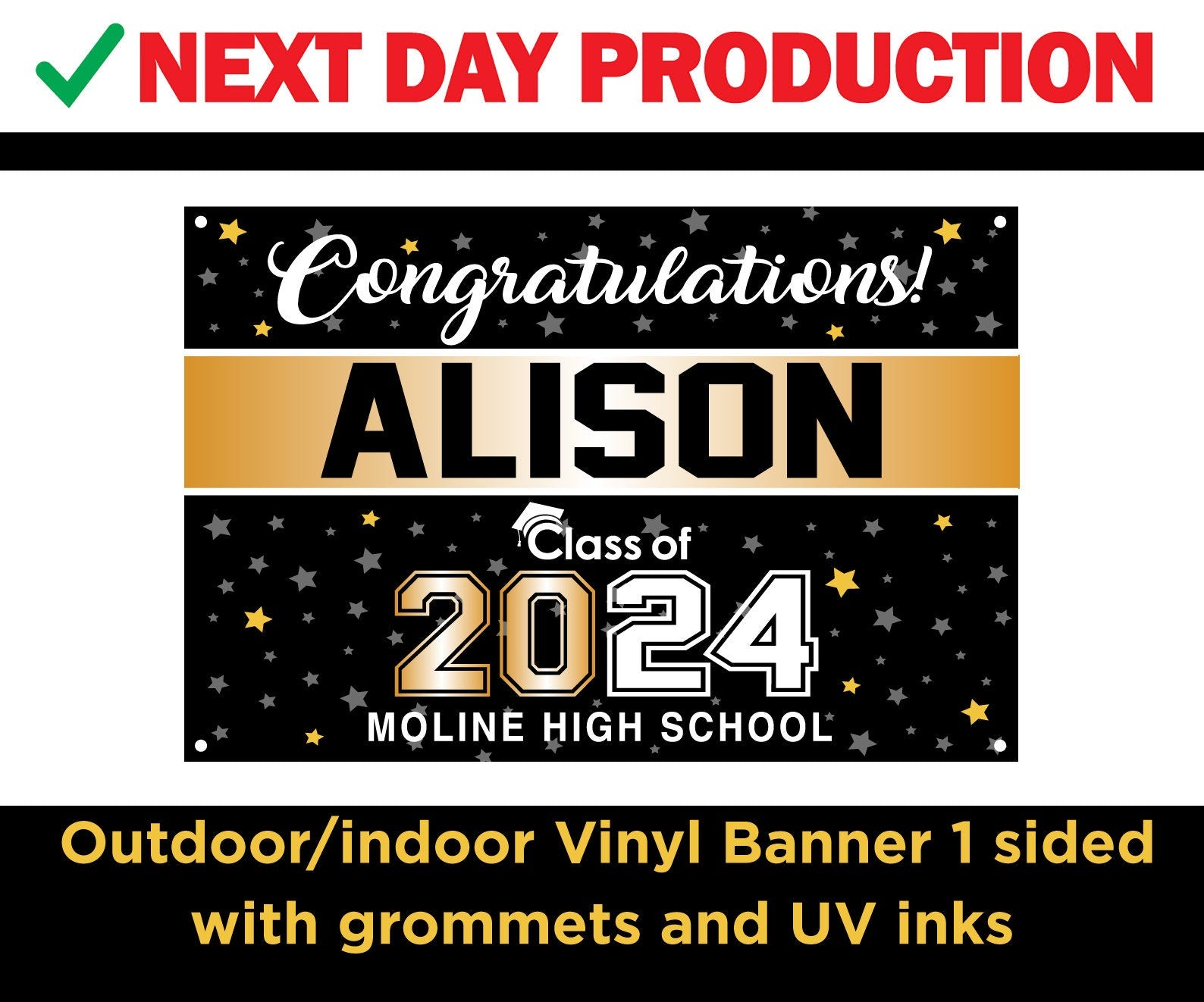Graduation Senior Vinyl banner- Graduate Yard Sign - Graduation - 2024 Graduate Banner - High School Grad- Waterproof, Hemmed, with Grommets