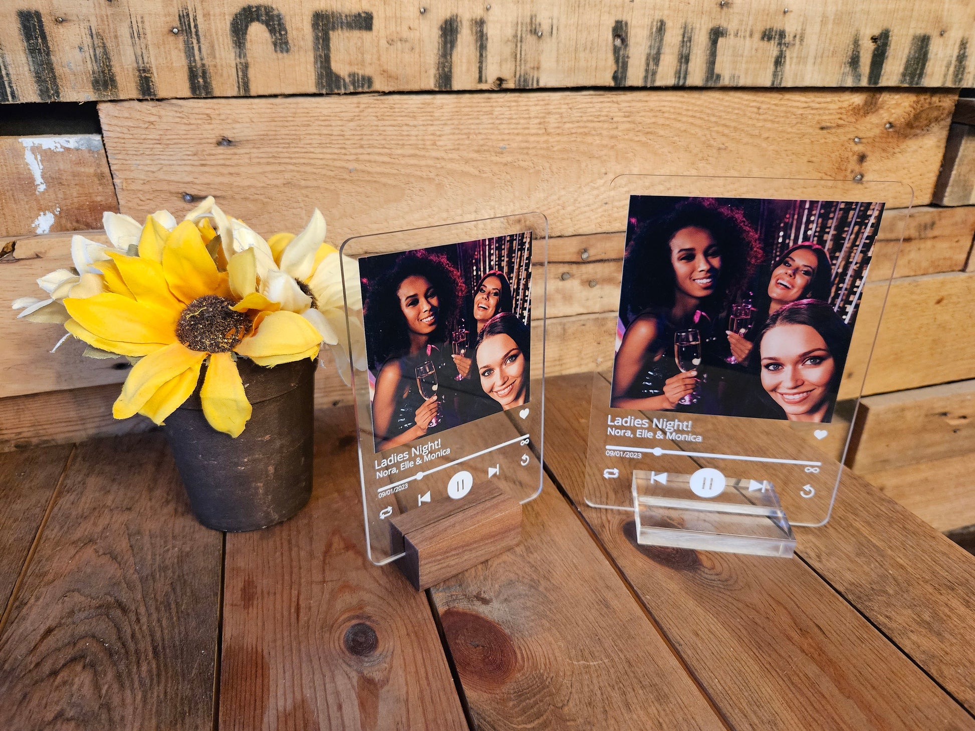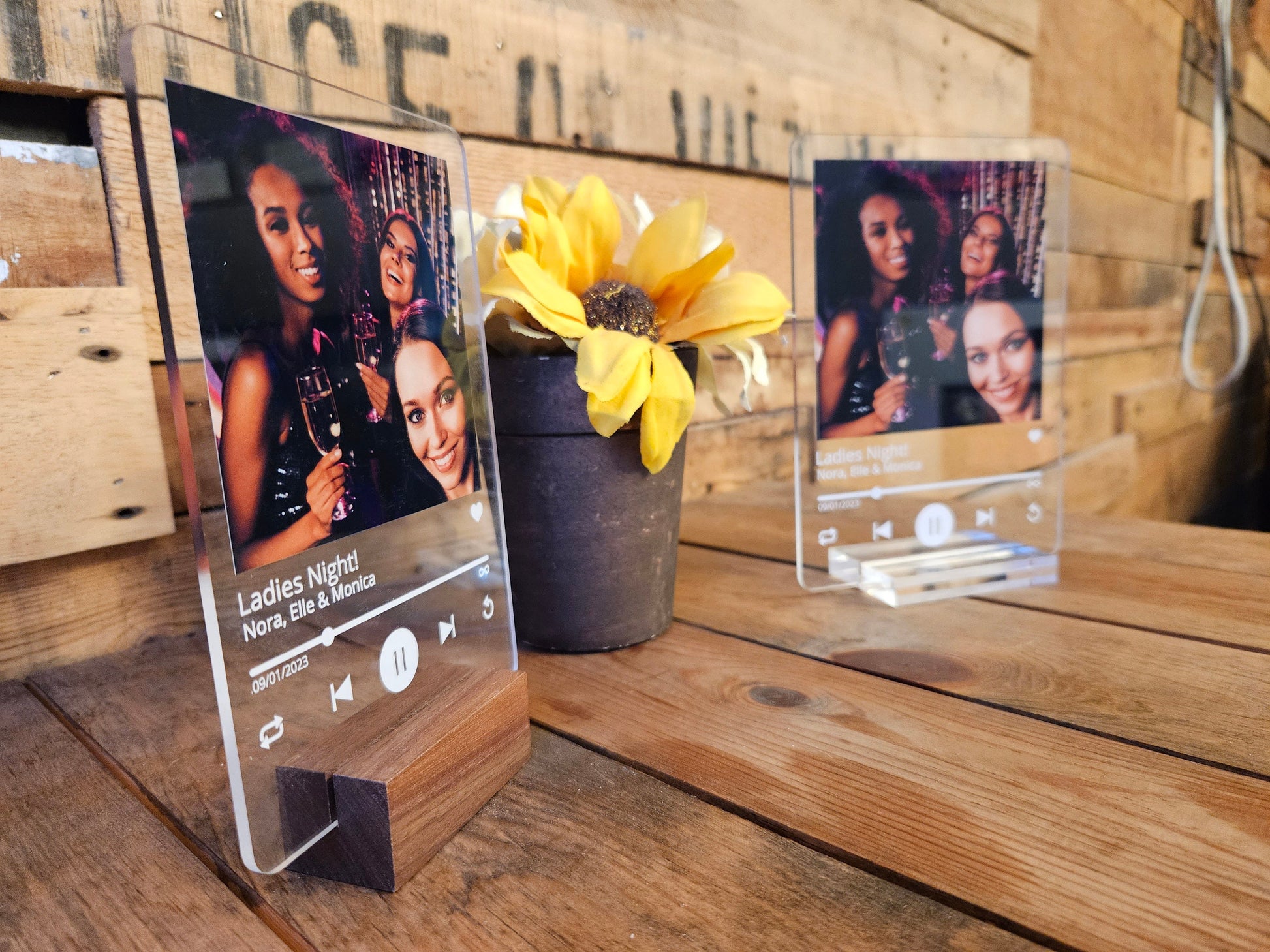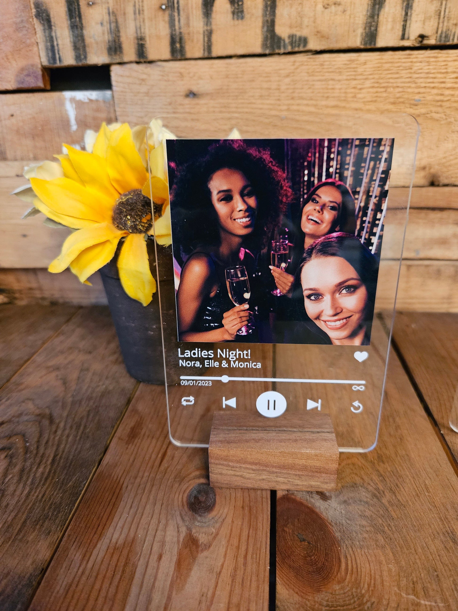 Personalized Love Song Lyrics with Acrylic Photo-a one-of-a-kind keepsake that beautifully merges your favorite lyrics with a cherished photo. Crafted from high-quality clear acrylic, this custom piece features direct print technology for vibrant, lasting colors. Choose from a wood or clear acrylic stand to complete the look, making it the perfect gift for weddings, anniversaries, or Valentine's Day. Immortalize your special moments and favorite tunes in a stylish, lasting way.