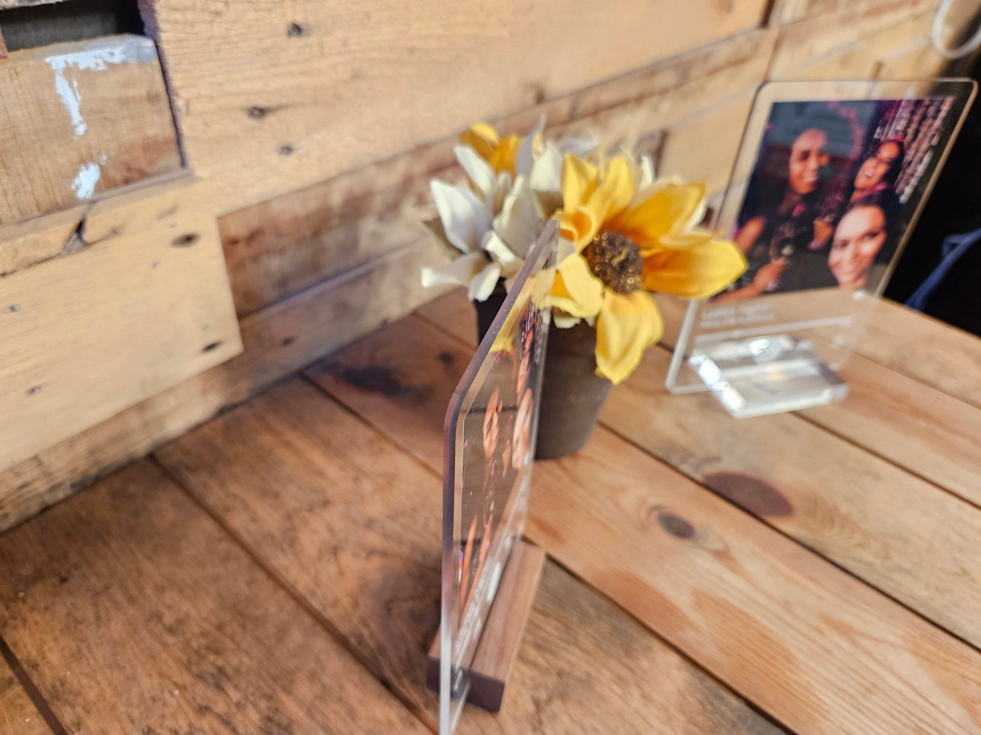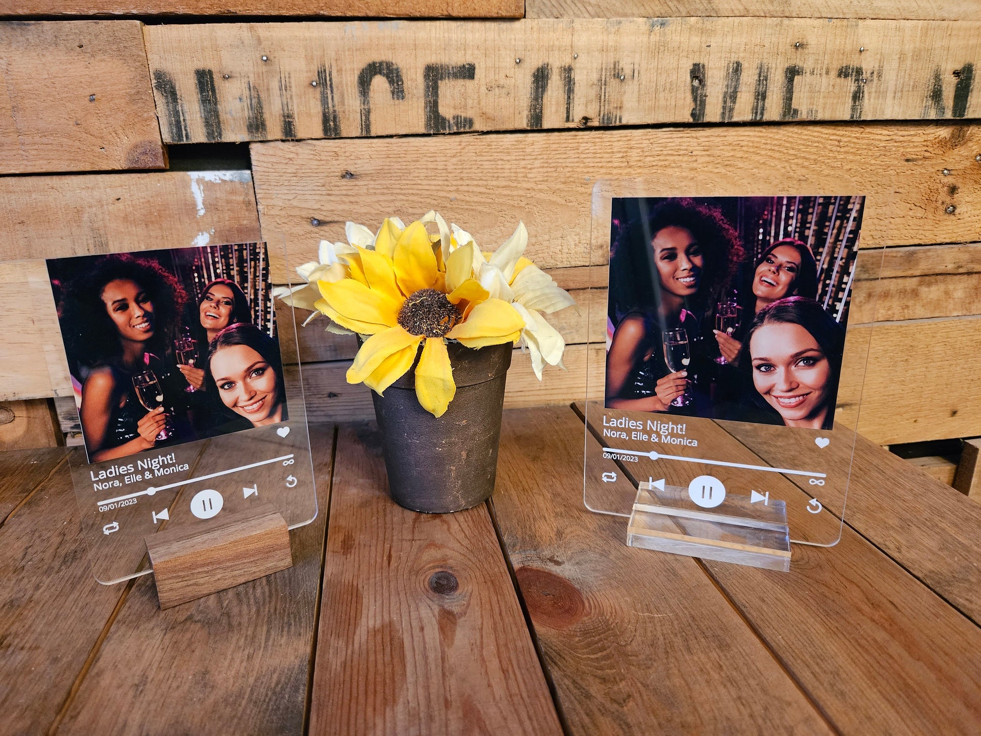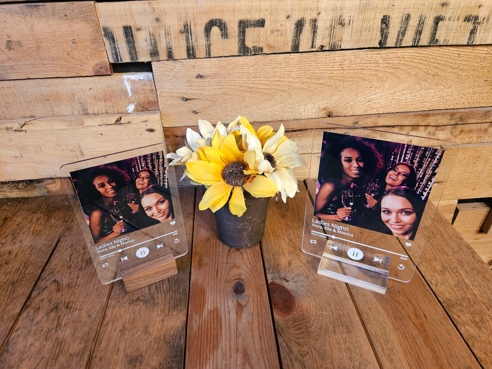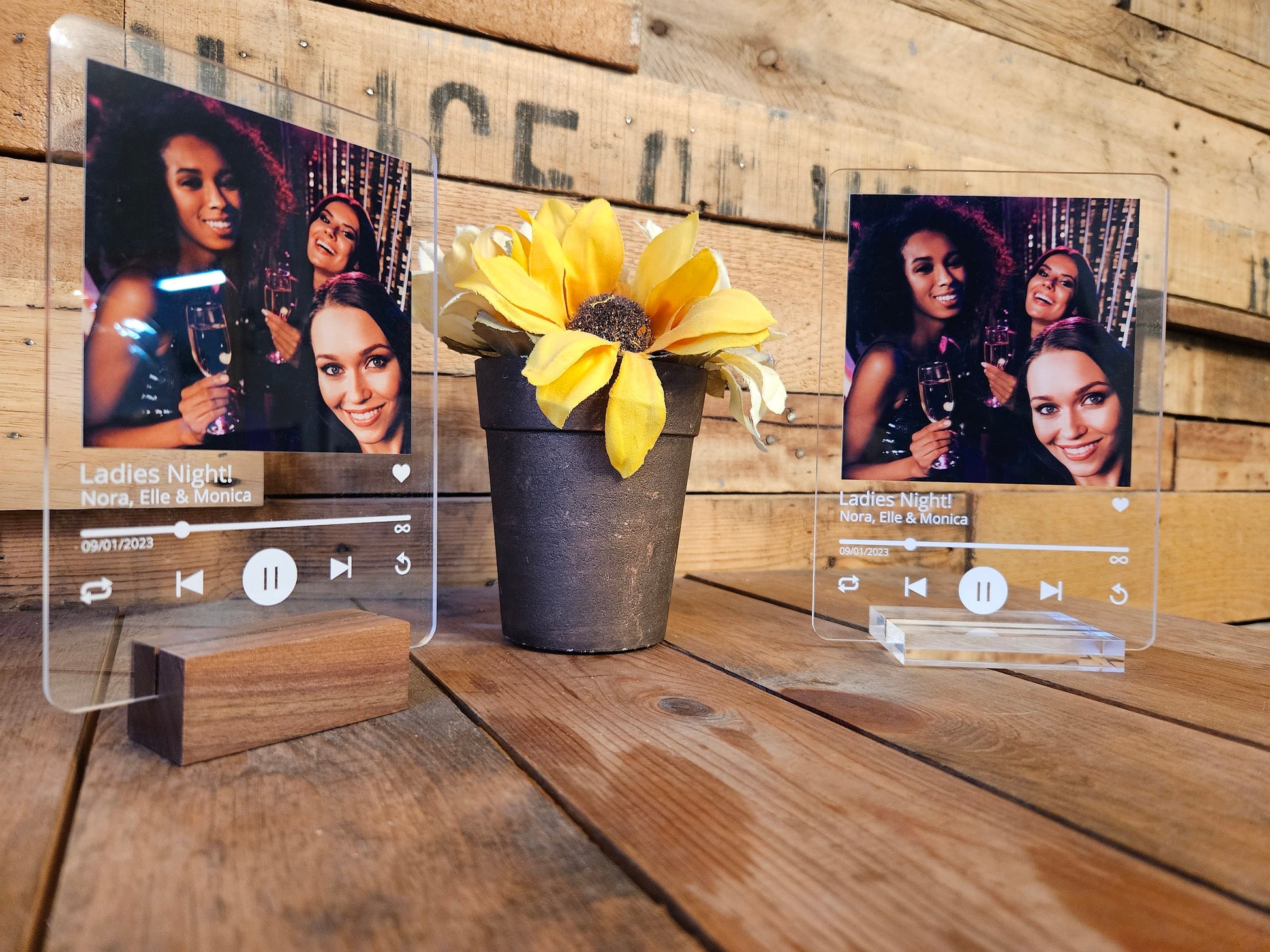 Personalized Love Song Lyrics with Acrylic Photo-a one-of-a-kind keepsake that beautifully merges your favorite lyrics with a cherished photo. Crafted from high-quality clear acrylic, this custom piece features direct print technology for vibrant, lasting colors. Choose from a wood or clear acrylic stand to complete the look, making it the perfect gift for weddings, anniversaries, or Valentine's Day. Immortalize your special moments and favorite tunes in a stylish, lasting way.
