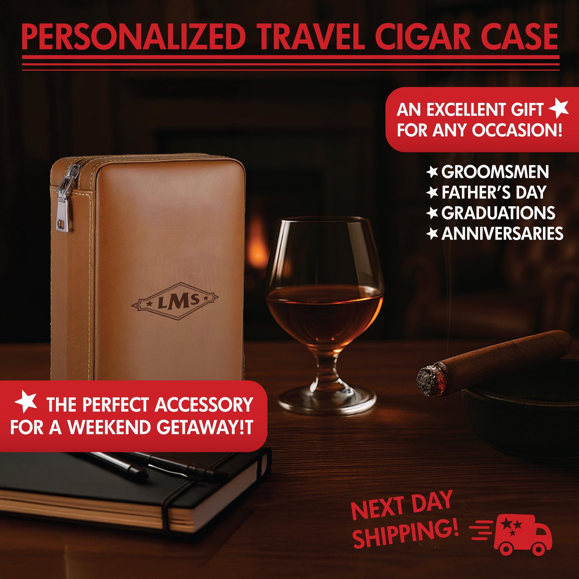 For the cigar lover on the move, our Personalized Leather Cigar Humidor Travel Case is the perfect blend of style, function, and craftsmanship. Custom-engraved with their name or initials, this sleek travel companion ensures cigars stay fresh while adding a sophisticated personal touch. Whether itโs for a birthday, Fatherโs Day, an anniversary, or a groomsmen gift, this humidor is designed for those who appreciate lifeโs finer moments.